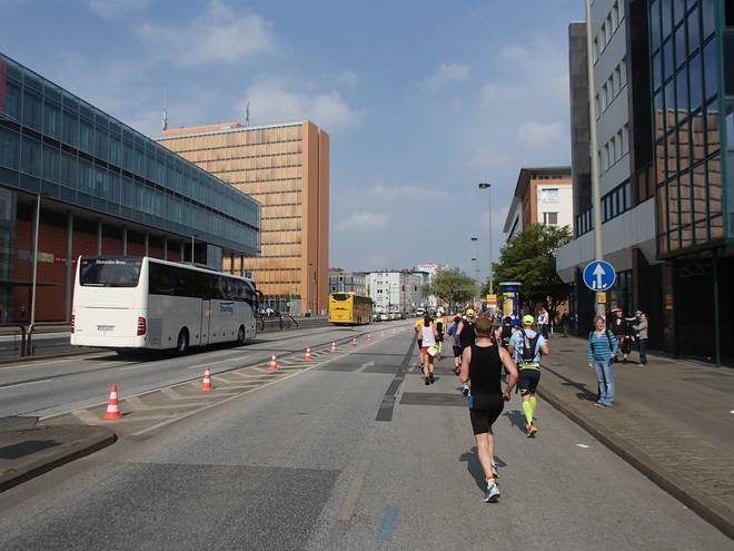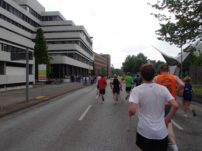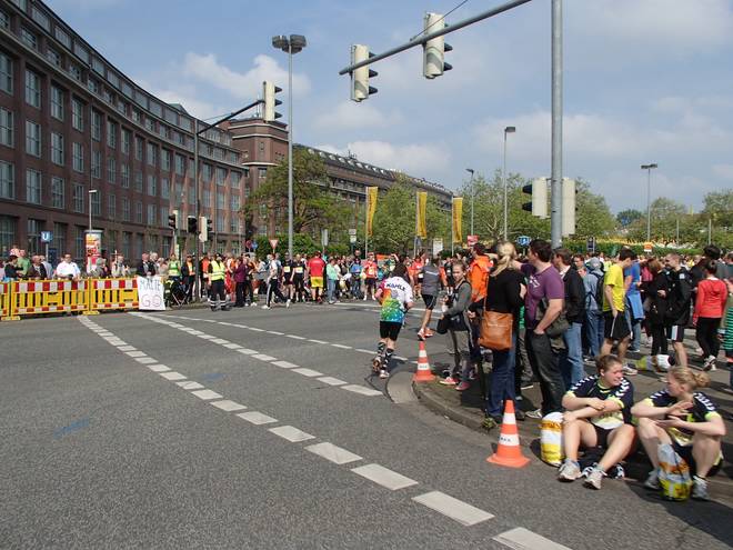 Schaufelder Straße 11.42 Uhr / Km 33,3 Musik hatte ich zwar auch auf dem mp3-Player, aber Stimmung von außen kommt immer gut. Auch schon rein visuell. |