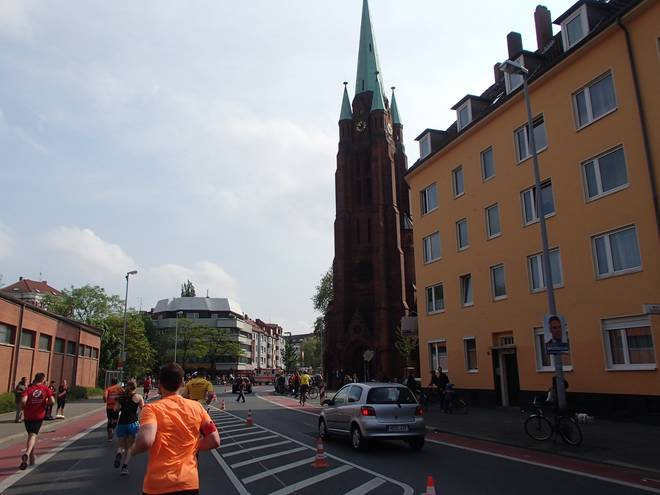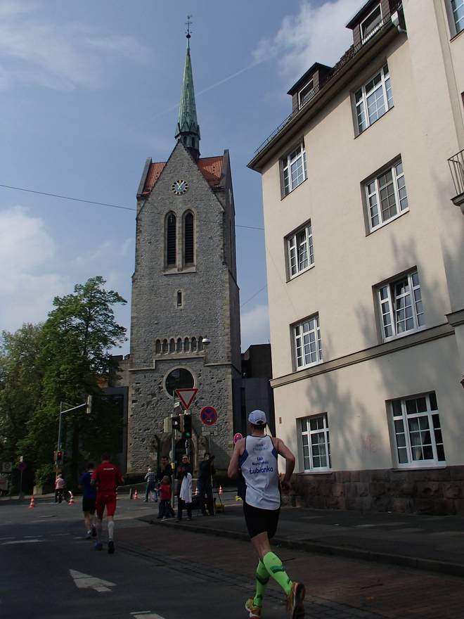 Celler Straße 10.51 Uhr / Km 22,5 Diesmal geht es an der Apostelkirche vorbei. |