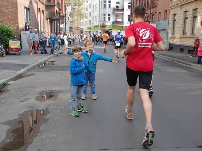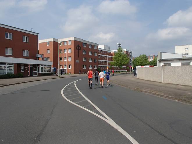 Büttnerstraße 11.21 Uhr / Km 28,8 Der Norden Hannovers war nicht so spannend. Aber auch da mußte man sich durchbeißen. |