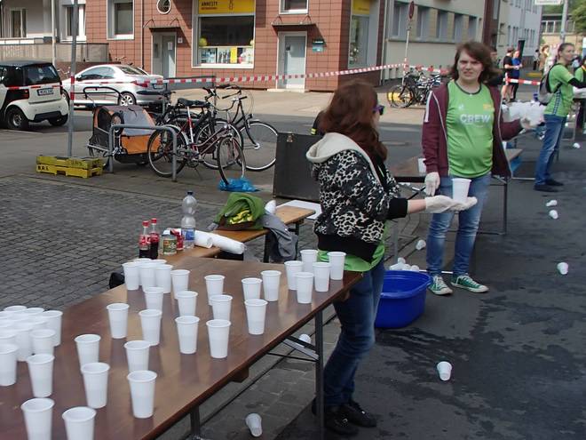 Jakobistraße 10.55 Uhr / Km 23,2 Es folgte bald der sechste Verpflegungspunkt. Durst war genug da. |