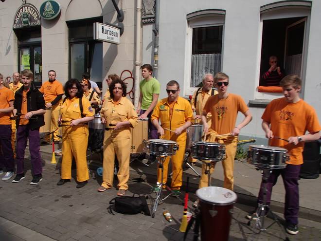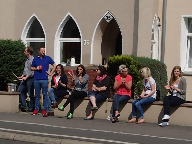 Lister Kirchweg 11.06 Uhr / Km 25,5 Das sieht doch gemütlich aus. Die waren ganz schön laut. Klatsche und Trommel inklusive. |