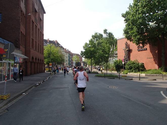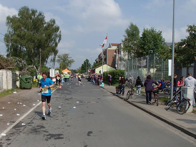 Ackerstraße 11.04 Uhr / Km 25,0 Knapp über zwei Stunden war ich unterwegs und schon bei Kilometer 25. Echt ein Wahnsinn. Am Vortag war ich noch 18,5 Kilometer / 1:45 Stunden durch Hannover gelaufen und hatte danach noch ein paar Stunden Sightseeing betrieben. Davon war nichts zu spüren. |