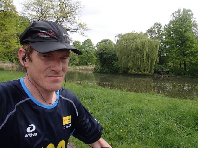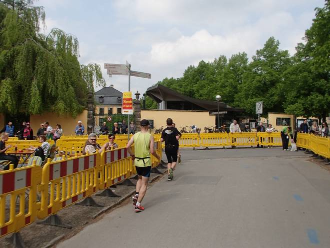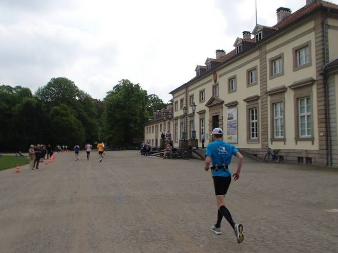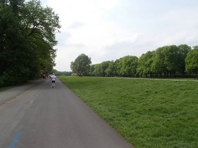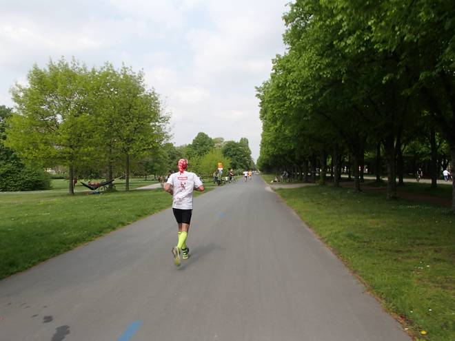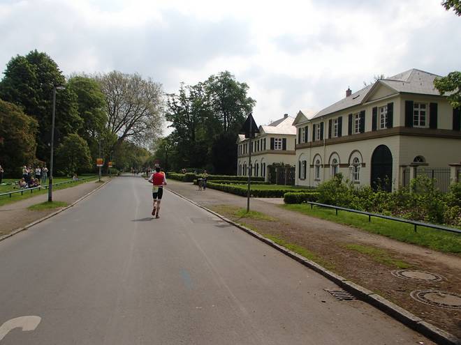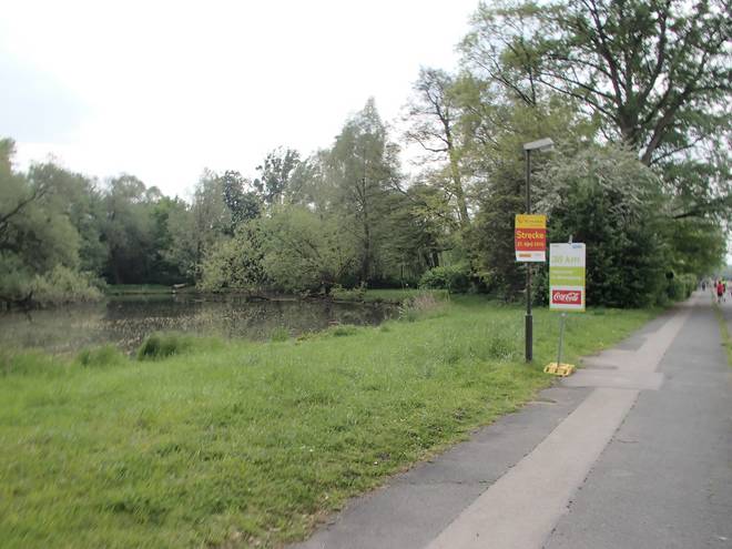 Georgengarten 12.05 Uhr / Km 38,2 Mit dem aktuellen Tempo lief ich inzwischen Richtung 3:22 Stunden. Das galt es aber noch durchzuhalten. |