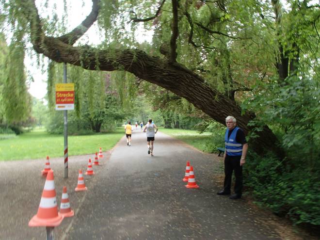 Georgengarten 12.07 Uhr / Km 38,6 Gefahren lauern bei einem Marathon ab bekanntlich überall. Auch im Park durch Bäume. |