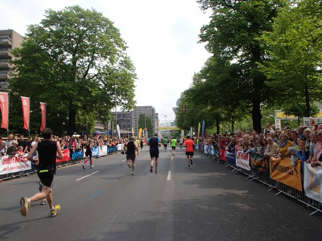 Leibnizufer 12.21 Uhr / Km 41,8 Da wurde es schon sehr eng auf der Straße. Besonders wenn da die Zuschauer auch noch die Gasse schmal machen. |
