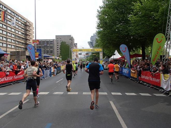 Friedrichswall 12.23 Uhr / Km 42,1 Die letzten Meter eines wahrlich denkwürdigen Marathons. Man läuft ja nicht ständig den persönlich zweitschnellsten Marathon. |