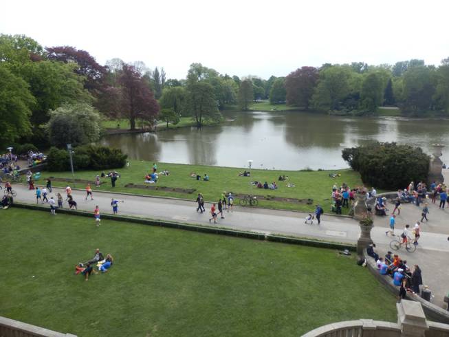 Maschpark / Maschteich 13.18 Uhr Nett waren die neidischen Blicke. Da oben auf dem Balkon sah ich ja aus wie eine VIP oder sonst etwas bekanntes. Stimmte aber nicht. War nur ich. |