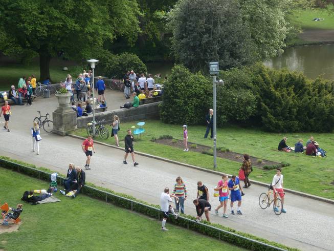 Frederikenplatz 13.36 Uhr Hier ein Marathon-Läufer mit Familie. |