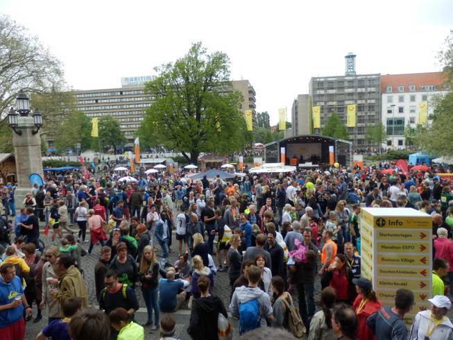 Trammplatz 13.30 Uhr So ganz einfach würde der Heimweg nicht werden. Inzwischen kamen auch die ersten der 3153 Läufer über 10 Kilometer ins Ziel. |