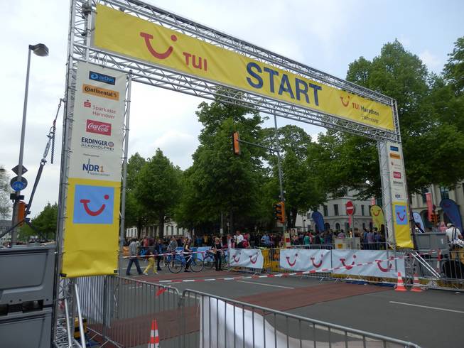 Friedrichswall 13.32 Uhr Die Walker und Nordic Walker über jeweils 10 Kilometer waren derweil auch auf der Strecke. Damit war die Arbeit für das Start-Tor erledigt. |
