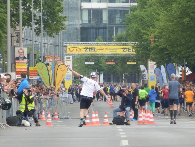 Marktstraße / Ebhardtstraße 12.29 Uhr Es dauerte eine Weile, sich im Gewusel der vielen Halbmarathon-Finisher zu den Medaillen zu arbeiten (alle bekamen die gleiche). |