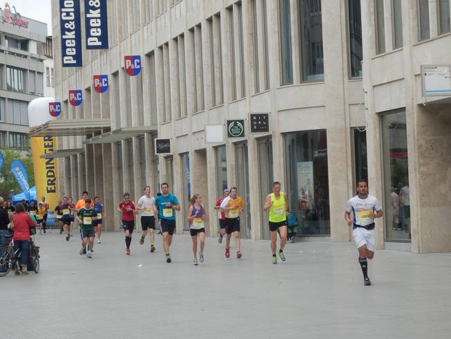 Karmarschstraße 13.44 Uhr Durch die Innenstadt lief noch der 10-Kilometer-Lauf. Hier so bei Kilometer 9 und Laufzeit 42 Minuten netto. |
