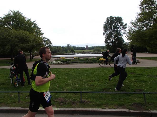 Alte Wöhr 11.10 Uhr / Km 25,0 2:03:54 Stunden. Nur 24:26 Minuten für die fünften fünf Kilometer. Lief doch prima. Aber würden die nach dem Hannover-Marathon in der Vorwoche noch müden Beine durchhalten? |