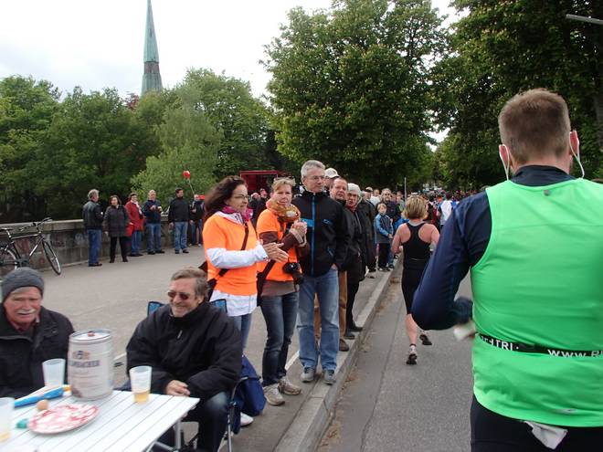 Im Grünen Grunde 11.37 Uhr / Km 30,8 Willkommen in der Party-Meile Ohlsdorf. Auf fast einem Kilometer ist hier jedes Jahr grandiose Stimmung. |