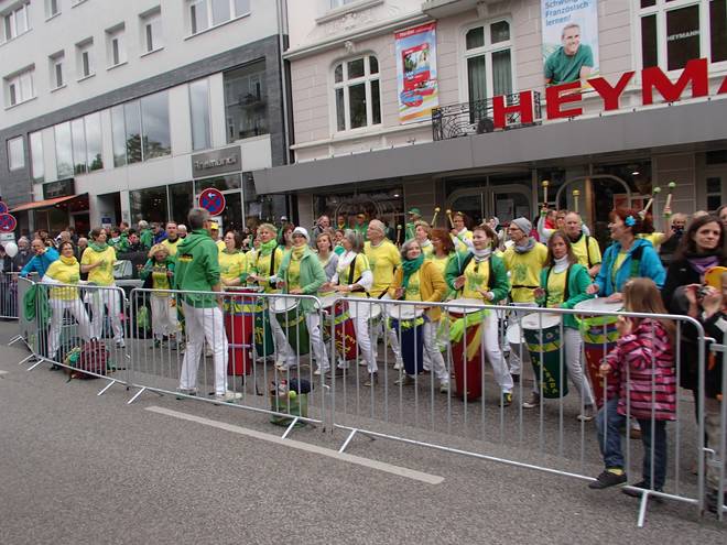 Überseering 11.21 Uhr / Km 27,3 Hier in der City Nord war der zweite Staffelwechsel. Die Wechsel waren bei Km 16,3 und 27,7 und 32,7. Die Strecken also 16,3 und 11,4 und 5,0 und 9,5 Km lang. Da war für jeden etwas dabei. |