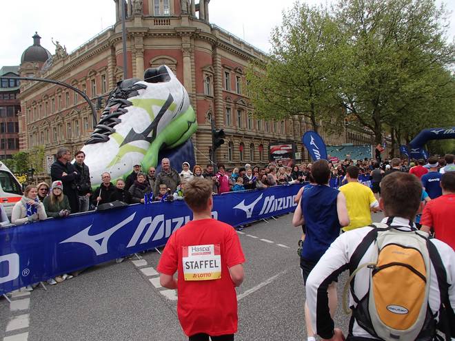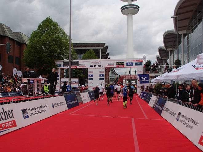 Karolinenstraße 12.33 Uhr / Km 42,194 Auch ohne Tochter schaffte ich es über die Ziellinie. Mein 14. Finish in Hamburg. Foto: MarathonFOTO.com |