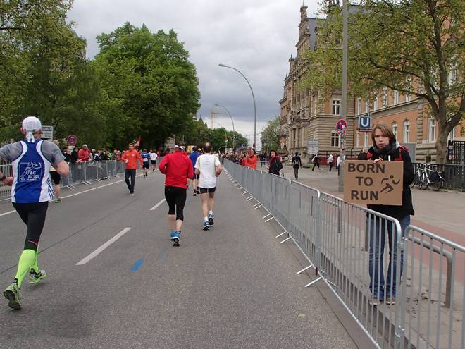 Gorch-Fock-Wall 12.27 Uhr / Km 40,9 Da kommen solch nette Anfeuerungen gerade recht. |