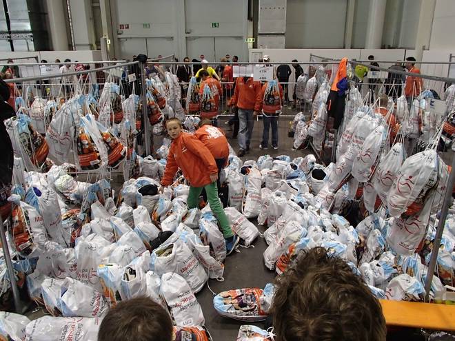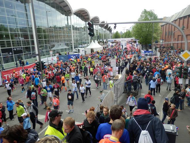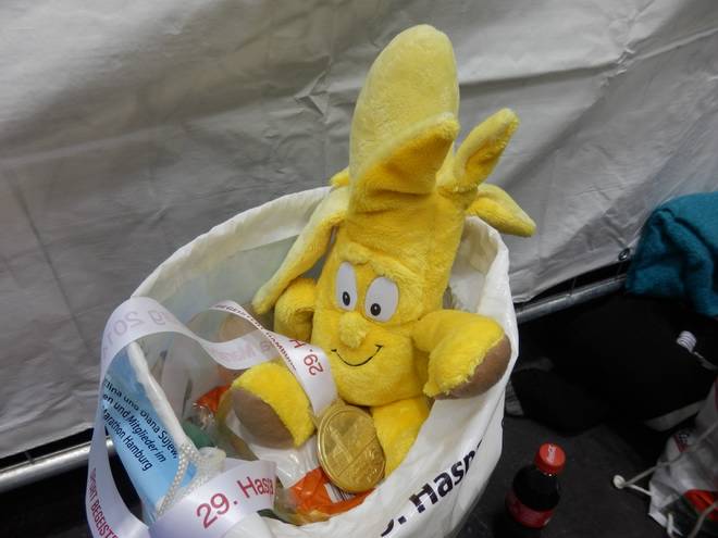 Messe Hamburg 12.49 Uhr Kleiderbeutel abholen war dann etwas chaotisch. Da hätte man die Zeit des Laufes nutzen sollen und die Beutel vielleicht in numerischer Reihenfolge zu ordnen. So dauerte da natürlich ewig. Läufer 1: "Mein Beutel ist der