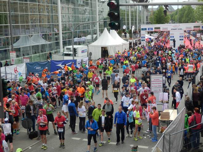 Messe Hamburg Nun ging es an die After-Run-Verpflegung.