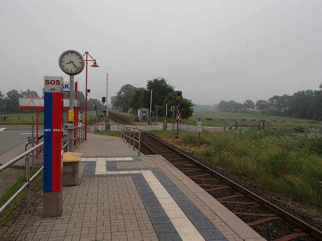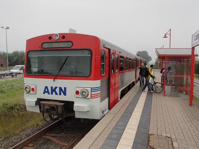 Langeln 14.13 Uhr Viel schneller schaffte ich den Weg am Morgen auch nicht. Pünktliches Eintreffen an der AKN-Haltestelle ich hilfreich. Die Züge fahren sonn- und feiertags nur alle zwei Stunden. |