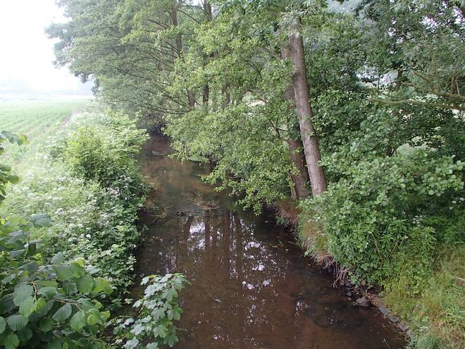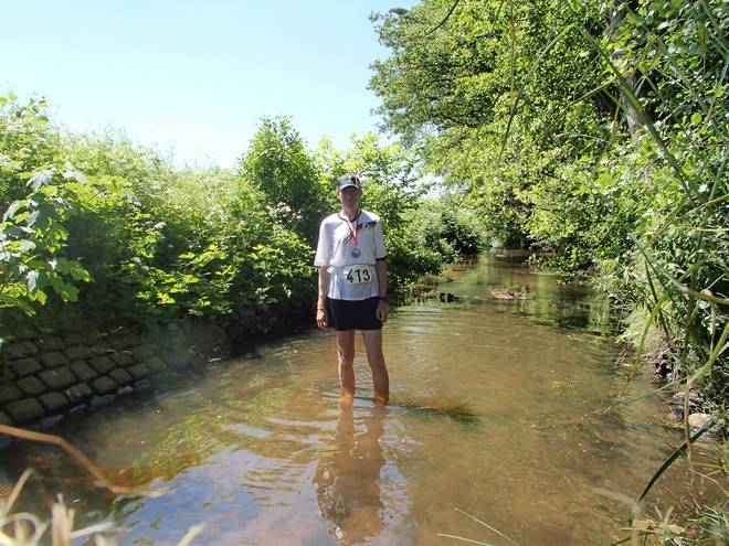 Voßmoorstraße 8.39 Uhr Der Fluß verläuft nördlich von Langeln. Da kam mir schon vor dem Start die Idee, wie ich mich nach dem Lauf würde abkühlen können. |