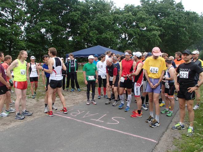Voßmoorstraße 9.01 Uhr 54 Marathonläufer, ein Halbmarathonläufer und zwei Staffeln waren am Start angetreten. Machte 57 Starter. |
