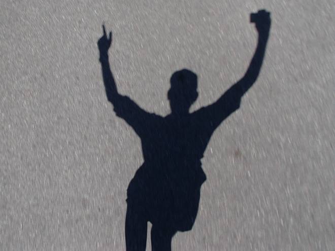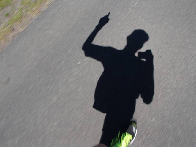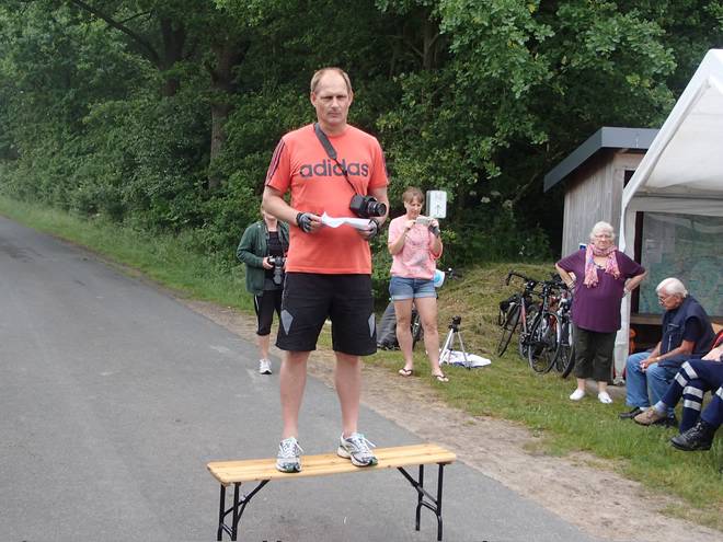 Voßmoorstraße Runde 10 12.55 Uhr / Km 41,6 Ich ahnte schon, daß es im Ziel keine Fotos geben würde. Also nahm ich mein Jubelfoto schon einmal vorweg. |