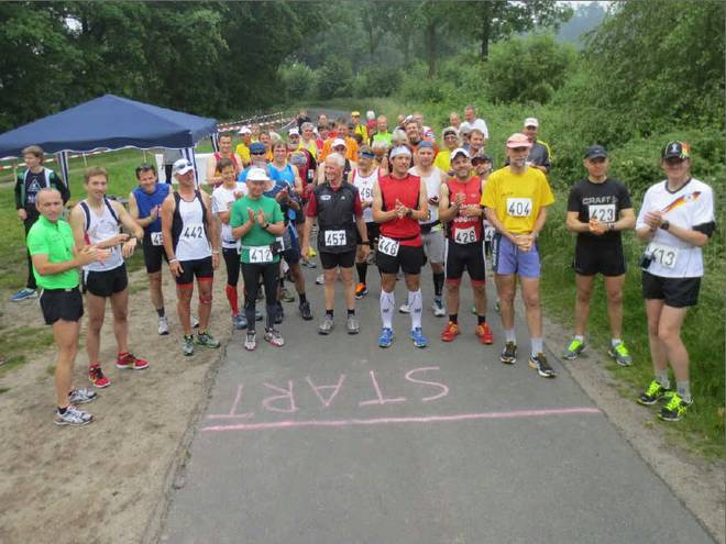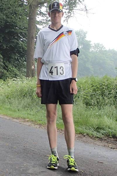 Voßmoorstraße 9.05 Uhr Und noch einmal ein Blick auf die Starter, diesmal mit mir. Ganz rechts außen im Deutschland-Trikot mit WM-2014-Cappy. Foto: Hans-Jürgen |