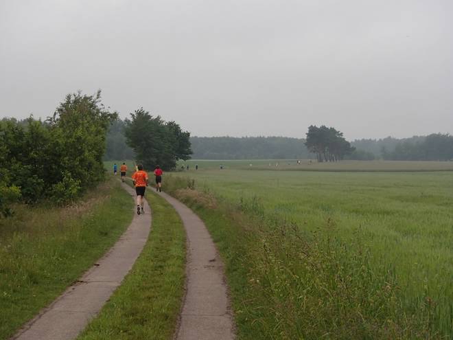 Im Voßmoor Runde 1 9.20 Uhr / Km 2,4 Nahe Hohenufer war auch ein wenig Wald mit dabei. |