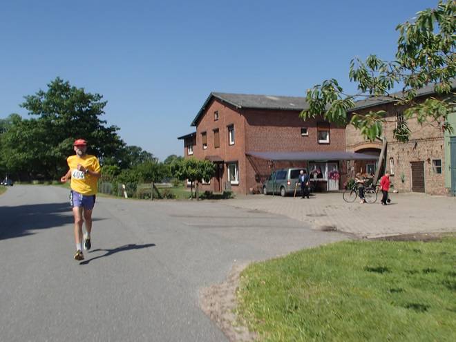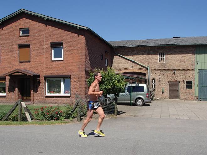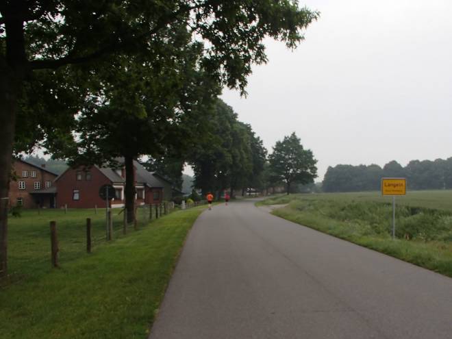 Dorfstraße Runde 1 9.23 Uhr / Km 3,0 Kurz nach Kilometer Drei jeder Runde erreichte man Langeln und lief so 600 Meter durch den Ort. Davon 500 Meter auf der Hauptstraße, welche aber nicht sonderlich befahren wurde. |