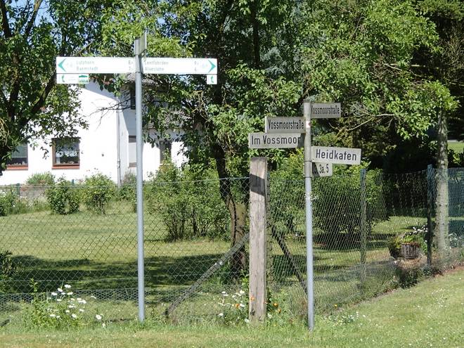 Voßmoorstraße / Im Voßmoor Runde 9 12.19 Uhr / Km 34,8 An der Nordwende des Kurses, einen Kilometer nach dem Rundenstart. Offenbar ist man sich nicht ganz einig, ob es nun Voßmoor oder Vossmoor heißt. An der Strecke fanden sich beide Varianten. |