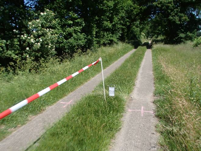 Voßmoorstraße Runde 5 10.43 Uhr / Km 17,3 Hier der Eingang Richtung Hügelgrab. |