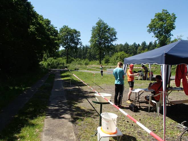 Heidkaten Runde 10 12.57 Uhr / Km 42,0 Mit der Spitzkehre war dann der Sturmlauf in Richtung Ziel am Ende. Nachdem ich die Kurve wie immer im Gehtempo gemeistert hatte war das Tempo raus. |