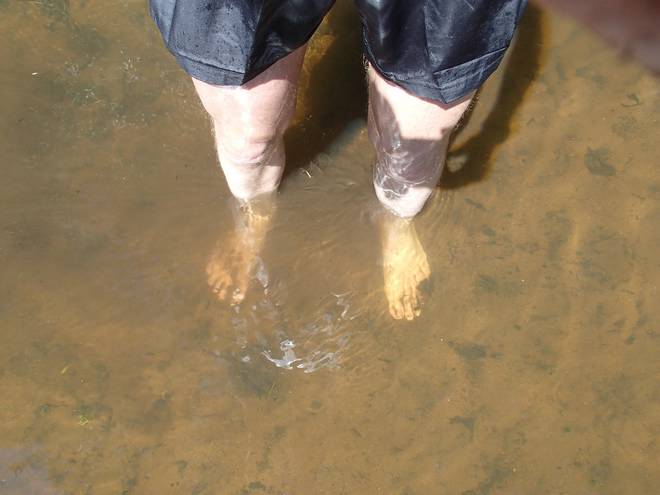 Krückau 13.04 Uhr Das Wasser war auch klar genug, um es sich in den Nacken zu kippen. |