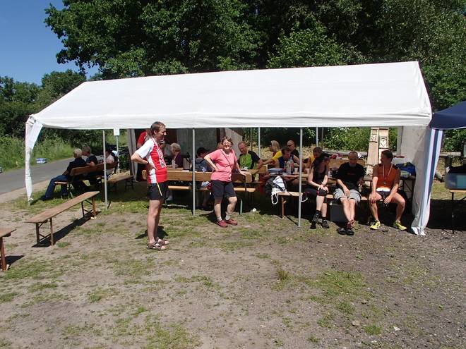 Dorfstraße Runde 8 12.07 Uhr / Km 32,6 Die Temperatur war nun bei 24°C angekommen. Im Schatten. Von dem hatten wir aber nicht sehr viel. Und wo Schatten war, da fehlte es an Wind. Es war gefühlt also heißer. |