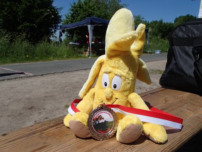 Voßmoorstraße 13.53 Uhr Benno Banane mit der Medaille. |