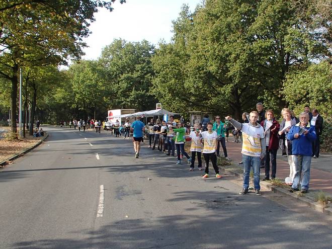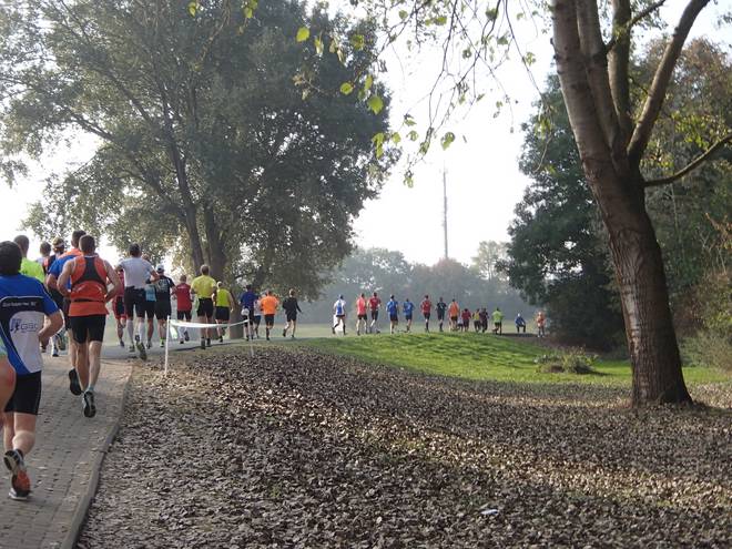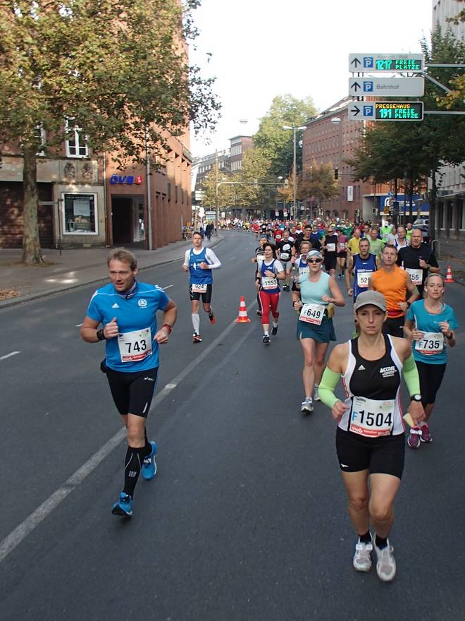 Parkallee 11.44 Uhr / Km 26,0 Und dann kam das Feld der Halbmarathonläufer dazu. Mit dem alleine Laufen war es nun definitiv vorbei. |