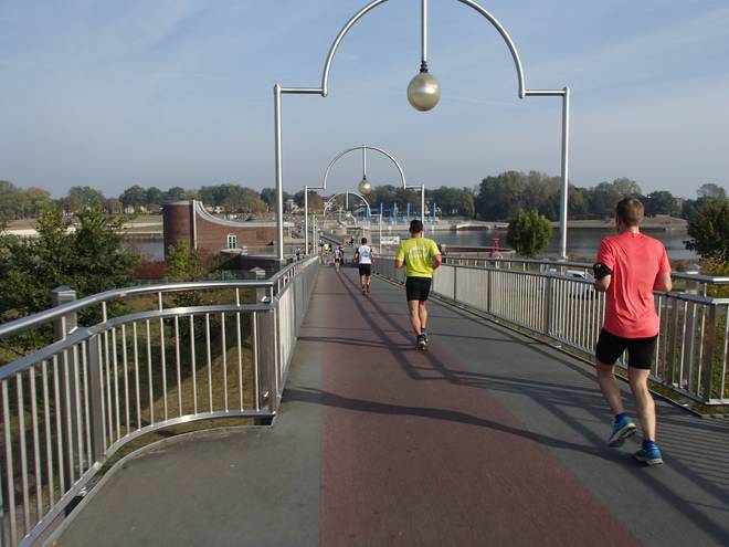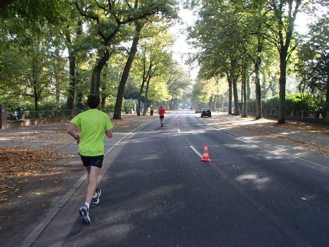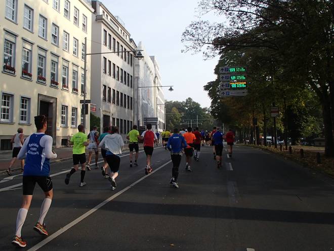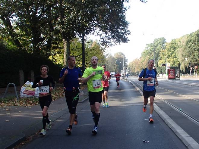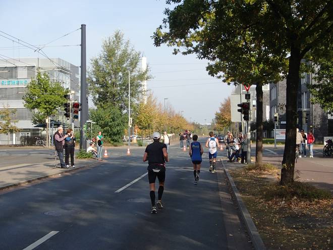 Marcusallee 11.20 Uhr / Km 20,5 Nun wurde es in Bezug auf die Mitläufer sehr übersichtlich. Diese zwei Läufer überholte ich noch bis zum Kilometer 21, dann war ich alleine, was den Blick nach vorne angeht. |