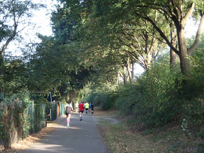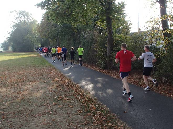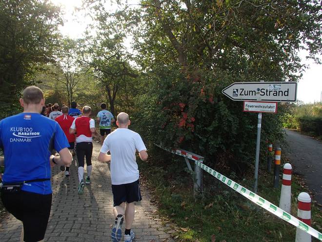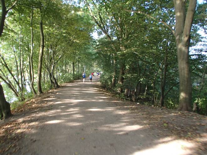 Am Werdersee 10.16 Uhr / Km 6,5 Die Ecke erinnerte ich noch von meinem Lauf 2009. Schöne Ecke, aber auch recht schmal und ungünstig zum Überholen. |