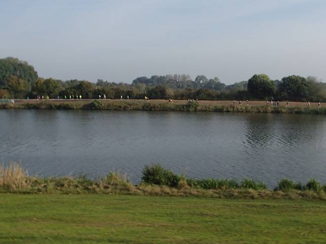 Weserdeich 10.30 Uhr / Km 9,6 Aber dann wurde mir auch das Tempo zu langsam. Hier auf dem Deich war zwar nicht die ideale Stelle zum Überholen, aber ich tat es dennoch. |