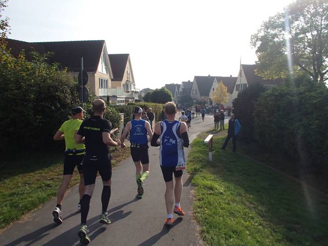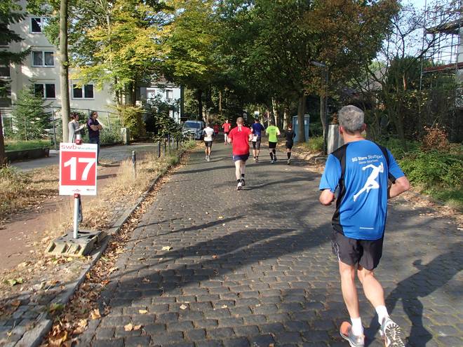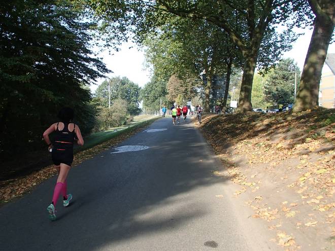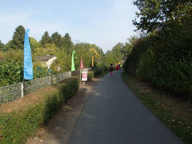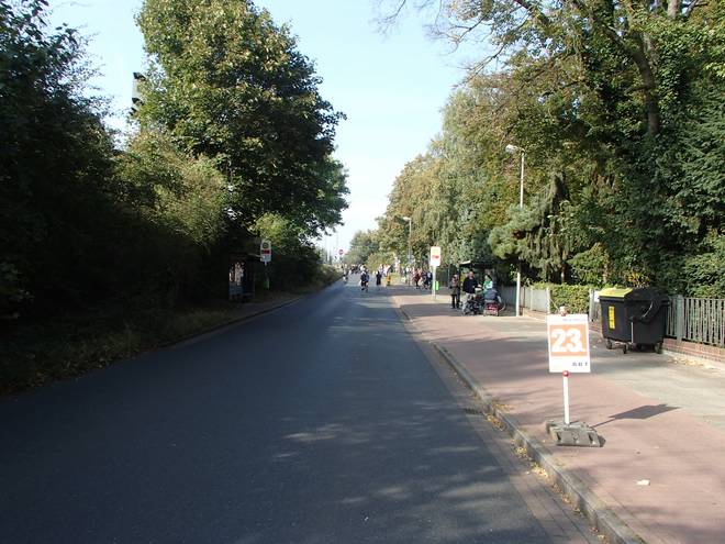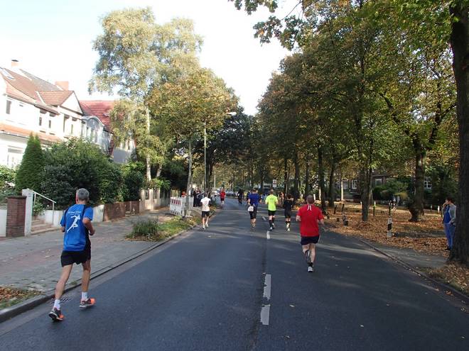 Am Herzogenkamp Achterstraße 11.31 Uhr / Km 23,1 Und wieder eine dieser unscheinbaren Steigungen. Das spürte man deutlich in den Beinen. |