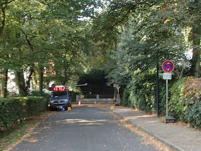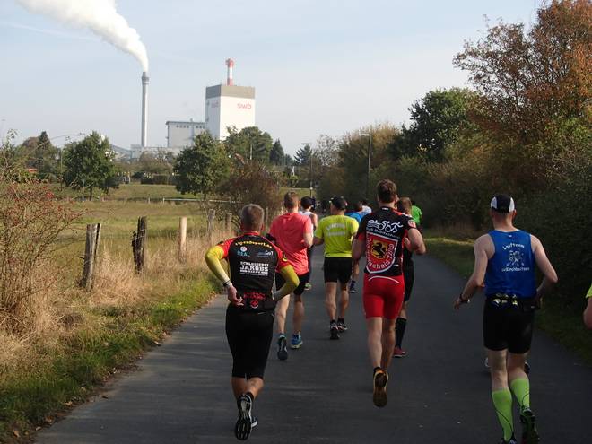 Wehrstraße 10.45 Uhr / Km 12,9 Die Pinkelpause dauerte genau 28 Sekunden. Verdammt lange wie ich fand. Die Dreier-Gruppe war deutlich an mir vorbei gezogen. Trotz meines Tempos hatte ich kaum einen Vorsprung heraus gelaufen. Offenbar war man mir gefolgt. |