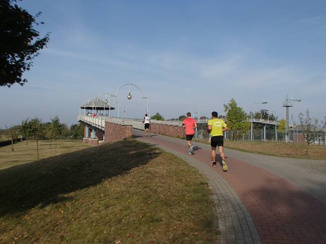 Weserdeich 10.30 Uhr / Km 9,6 Und schon lag ich vor den drei Läufern, von denen zumindest der Läufer ganz links zum Werder Sports Running Team gehörte. |