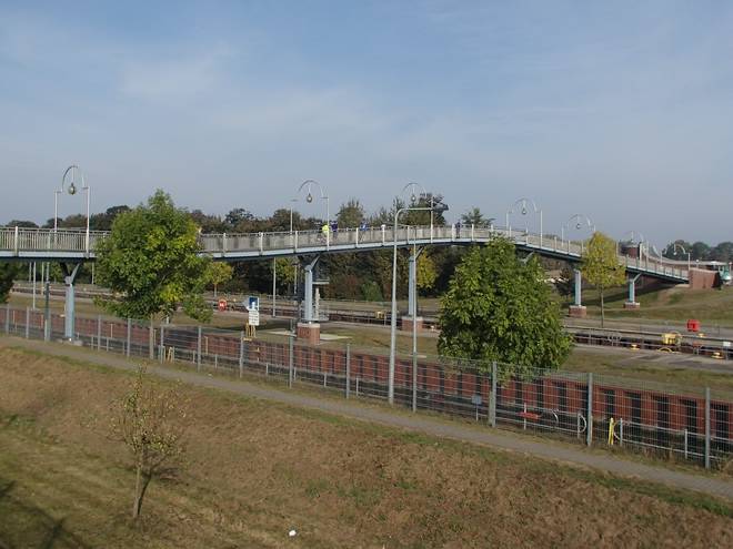 Wehrweg Weserwehr 10.47 Uhr / Km 13,3 Die Brücke gab es auch immer noch. Ich kam aber ohne große Tempoverluste oben an. |