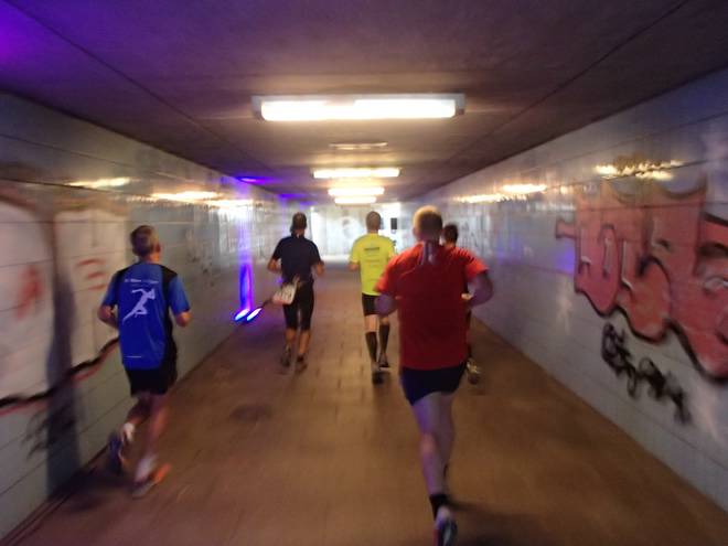 Kurfürstenallee 11.07 Uhr / Km 17,7 Dazu kamen einige sehr enge Kurven. Ohne respektlos sein zu wollen, aber wenn ich die Kurve in den Tunnel mit einer durchschnittlichen Walking-Geschwindigkeit nehme, dann komme ich da sauber herum. Bei über 13 Km/h haut es mich aber voll in die Kacheln. |