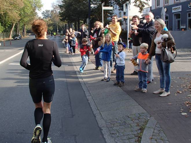 Leher Heerstraße Am Herzogenkamp 11.29 Uhr / Km 22,5 Andererseits hatte ich als alleine Laufender natürlich die ungeteilte Aufmerksamkeit des Publikums. |