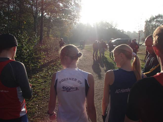 Öjendorfer See 8.46 Uhr Die Sonne war noch etwas schwach. Sonnenaufgang war auch erst eine Stunde zuvor gewesen. Trotz der nur 9°C hatte ich mich für die kurze Hose entschieden. Es war ja kaum Wind und später würde die Wärme schon noch kommen. Ich fand es mutig von mir, nach den Erfahrungen meiner letzten Marathons dem Wetterbericht noch zu vertrauen. |