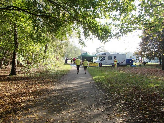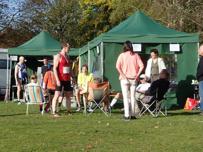 Runde 11 12.10 Uhr / Km 38,5 So. Letzte Runde. Sven lief hinter mir ins Ziel und für mich lag nun Kurs 3:25 Stunden an. Aber was war das? In hohem Tempo überholte mich Startnummer 73. Häh?? Bert hatte mich doch schon in Runde 5 überholt. Scheinbar sogar überrundet. Aber wenn er jetzt noch lief, dann war das alles falsch. |