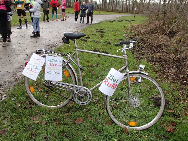 Rubbenbruchsee 10.53 Uhr Die Ziellinie wurde von diesem Fahrrad markiert. |