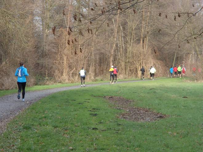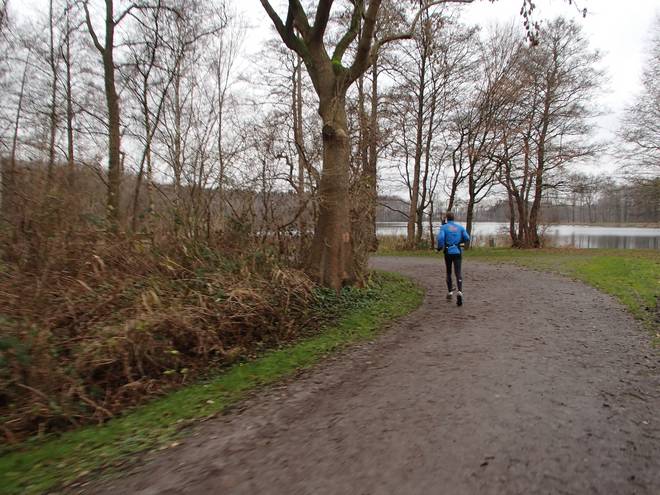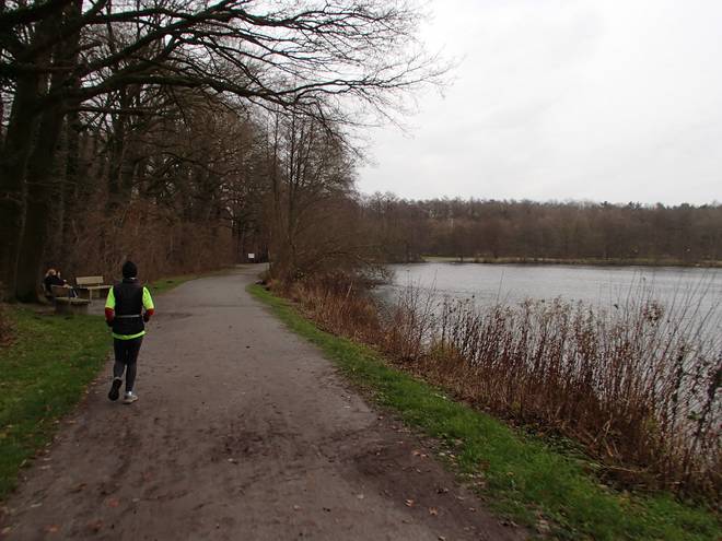 Runde 2 11.22 Uhr / 4,2 Km Gelaufen werden neun Runden. Die erste und die letzte Runde gehen nur um den See herum (3,095 Kilometer). Die Runden zwei bis acht wurden durch eine zusätzliche Schleife südlich des See ergänzt (insgesamt 5,14 Kilometer). |